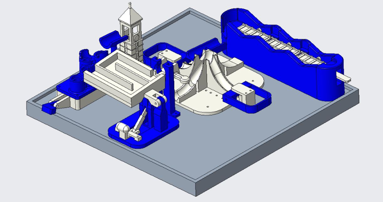 This toy consists of of 5 interactable obstacles inspired by the game "Screwball Scramble" and based off of Purdue University® Architecture. We were awarded "Best Engineering" for this project.