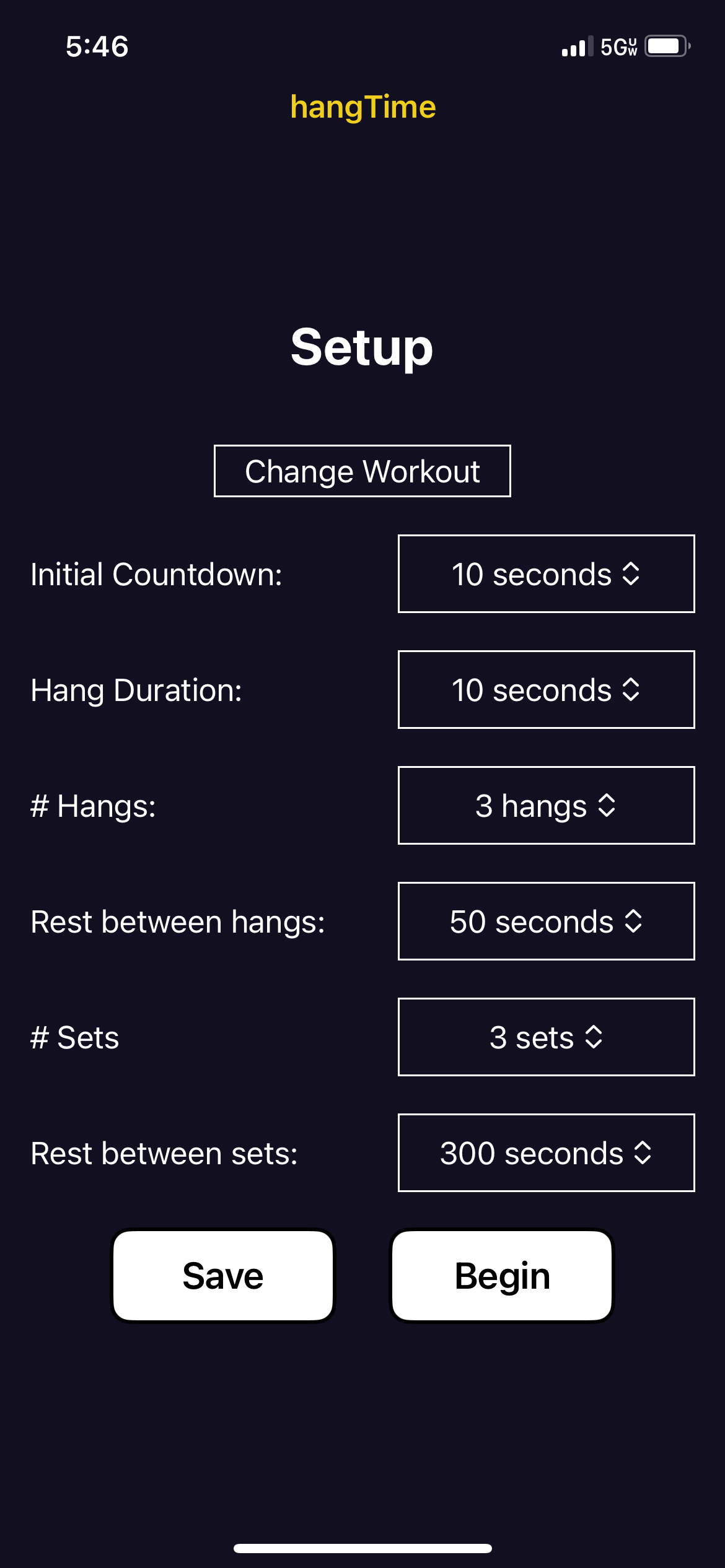 IOS app for setting up, running, and saving custom hangboard routines.